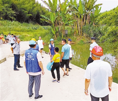 连城县姑田镇高度重视暑假期间学生及其他未成年人涉水安全教育工作,组织河长办河道专管员、保洁员做好日常巡查水域及安全宣传,并会同派出所、中心小学开展巡河宣传行动,提高群众“防溺水”安全隐患意识。图为日前一名被劝离下河游泳未成年人回家的场景。 通讯员 周宗胜 华丕炎 摄