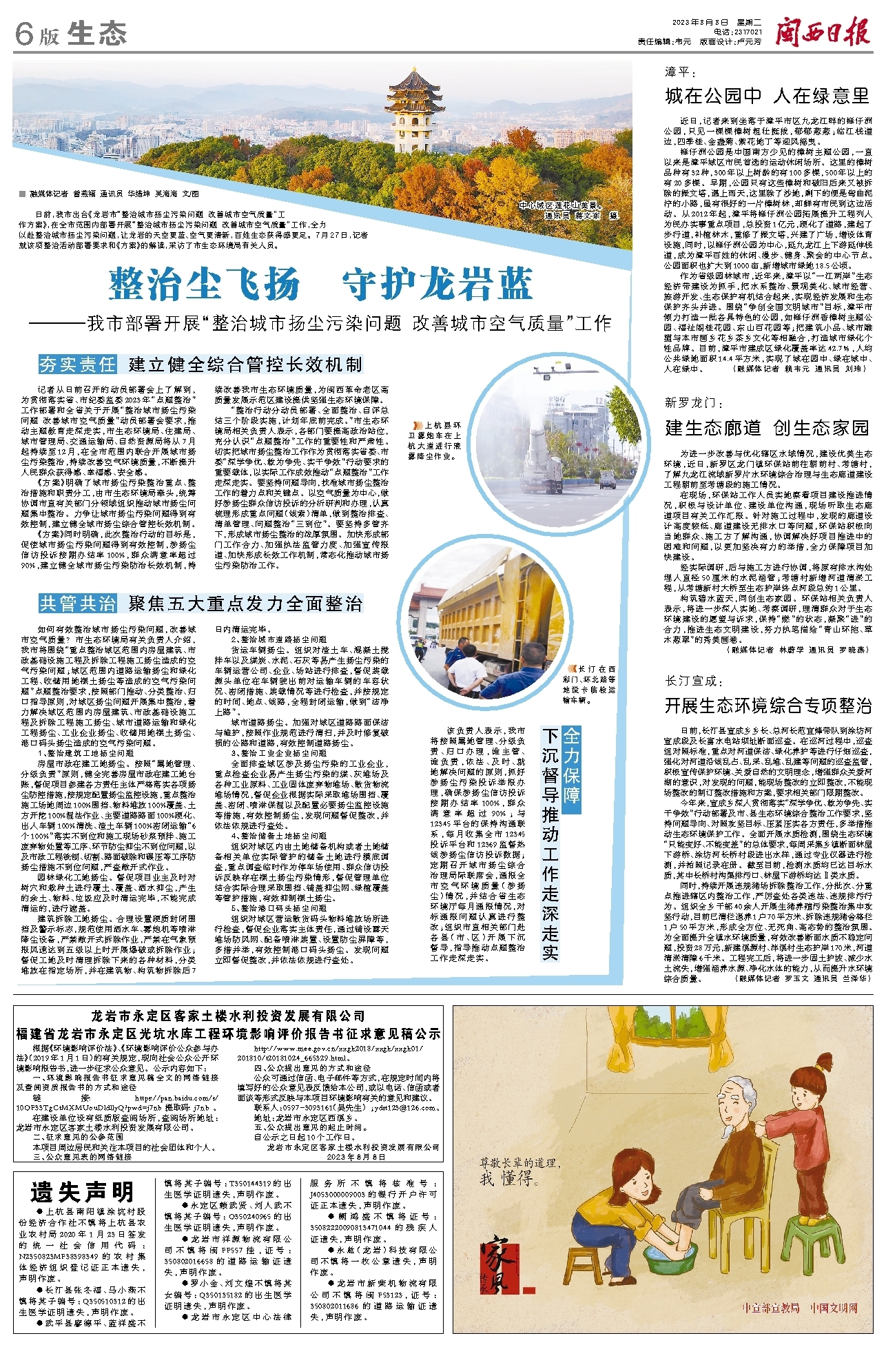 日前,我市出台《龙岩市“整治城市扬尘污染问题 改善城市空气质量”工作方案》,在全市范围内部署开展“整治城市扬尘污染问题 改善城市空气质量”工作,全力以赴整治城市扬尘污染问题,让龙岩的天空更蓝、空气更清新,百姓生态获得感更足。7月27日,记者就该项整治活动部署要求和《方案》的解读,采访了市生态环境局有关人员。