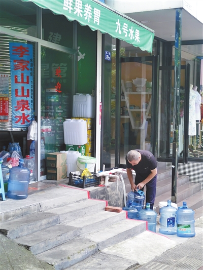 8月8日,一市民在莲南路装山泉水