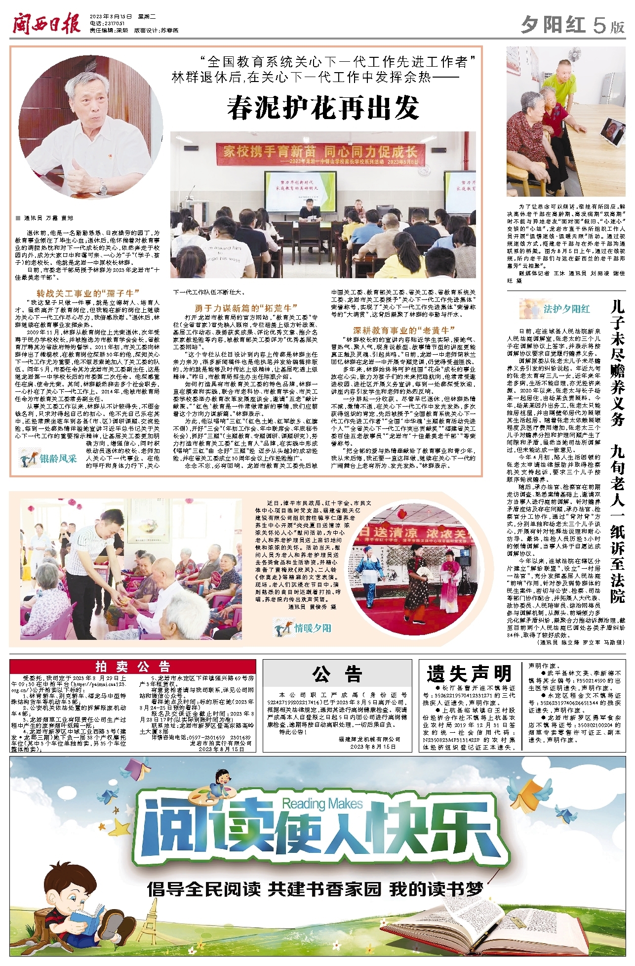 念念不忘,必有回响。龙岩市教育关工委先后被中国关工委、教育部关工委、省关工委、省教育系统关工委、龙岩市关工委授予“关心下一代工作先进集体”荣誉称号,实现了“关心下一代工作先进集体”荣誉称号的“大满贯”,这背后凝聚了林群的辛勤与汗水。