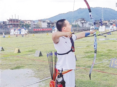 16日,龙岩市第十七届运动会青少组射箭比赛在长汀县红军体育场落幕。此次比赛共有新罗、武平、长汀、漳平等四个县(市、区)代表队参赛,共决出36块金牌。图为选手们在全神贯注比赛。 通讯员 陈天长 胡鑫盛 摄