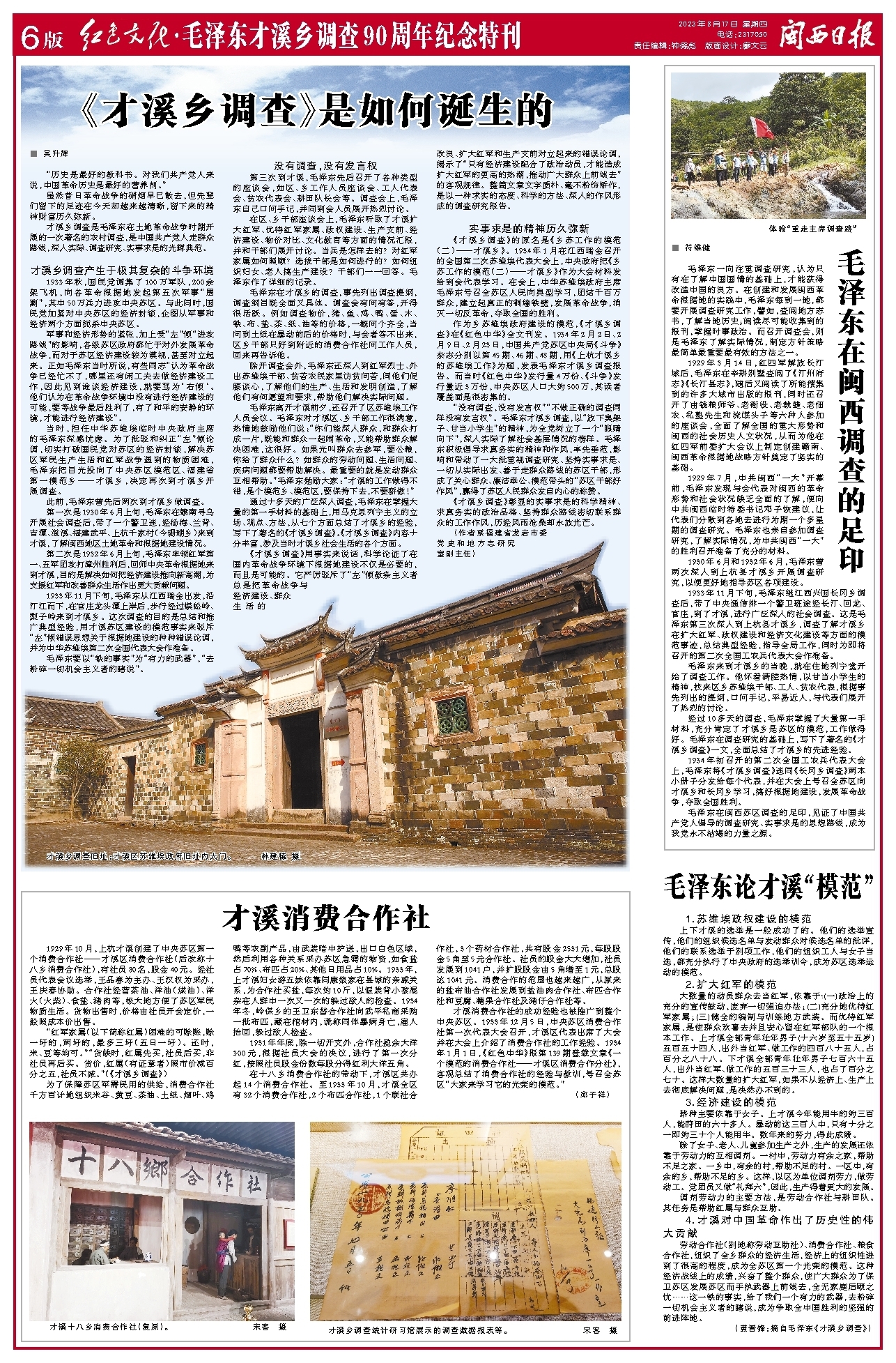 才溪消费合作社的成功经验也被推广到整个中央苏区。1933年12月5日,中央苏区消费合作社第一次代表大会召开,才溪区代表出席了大会并在大会上介绍了消费合作社的工作经验。1934年1月1日,《红色中华》报第139期登载文章《一个模范的消费合作社——才溪区消费合作分社》,客观总结了消费合作社的经验与教训,号召全苏区“大家来学习它的光荣的模范。”