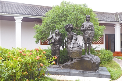 毛泽东才溪乡调查纪念馆才溪女专题陈列馆庭院中的雕塑。 通讯员 罗明旺 摄