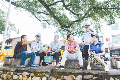 连城县公安局组织民警深入社区村组向群众开展禁毒、反诈宣传。