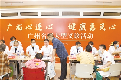 义诊现场,市民邱兰招带着病历和影像检查结果,早早来到这里。在中山大学附属第一医院副院长殷晓煜博士为其看诊后,邱兰招长舒了一口气,她坦言,能在家门口享受到广州名医的治疗,真是特别的幸运,因为就算去广州也很难预约到这些名医。