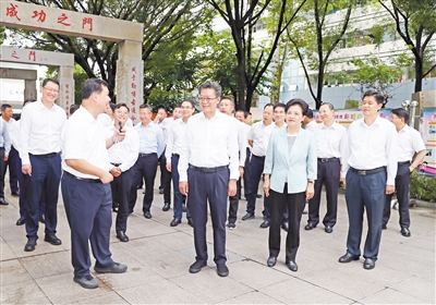 广州市党政代表团在龙岩第一中学考察。王毅 谢泽铧 摄
