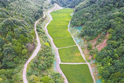 近日,笔者走进漳平市双洋镇煤矿废弃矿山生态修复点,一片盎然绿色映入眼帘,只见水田连片,稻浪翻滚,昔日的废旧遗留矿山和撂荒地被抚平“伤疤”,变成了良田,重焕生机。据悉,漳平市废弃矿山生态修复工程(双洋镇煤矿)是九龙江流域“山水林田湖草沙”一体化项目子项目,截至目前,该项目累计投资1849.49万元,治理面积达413亩,其中新增耕地约38亩。 通讯员 陈惠 练国强 摄