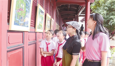9月1日,由漳平市委宣传部指导,市文化体育和旅游局、文学艺术界联合会主办的文旅龙岩2023年群文十大活动之“童绘菁城”漳平少儿农民画大赛获奖作品在文庙展出,吸引了漳平当地不少师生前来观展。