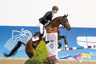 10月2日,中国选手华天在比赛中。当日,在桐庐马术中心举行的杭州亚运会马术比赛三项赛-场地障碍个人赛决赛中,中国选手华天夺得冠军。新华社记者 魏培全 摄