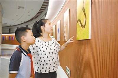 近日,由龙岩市文化和旅游局主办的广龙对口合作文化交流项目“飞阅中国 鸟瞰神州”吕凤霄航拍摄影作品展在龙岩市博物馆开展。图为市民在观展。 融媒体记者 方晨颖 摄