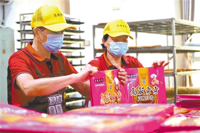 蔡壮伟夫妻忙着给完成烘烤后的月饼装袋压膜