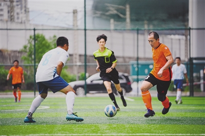 近日,第十七届市运会行业组足球比赛在新罗区光芒球场打响。据了解,本届市运会秉承“高效、绿色、节俭、安全”办会理念,由龙岩市政府主办,市体育局、市体育总会承办,共设青少组、行业组、群众组3个组别,竞赛项目与省运会接轨,设置43个项目、金牌556枚、参赛人数超6000名,均创历史新高。图为昨日足球比赛现场。