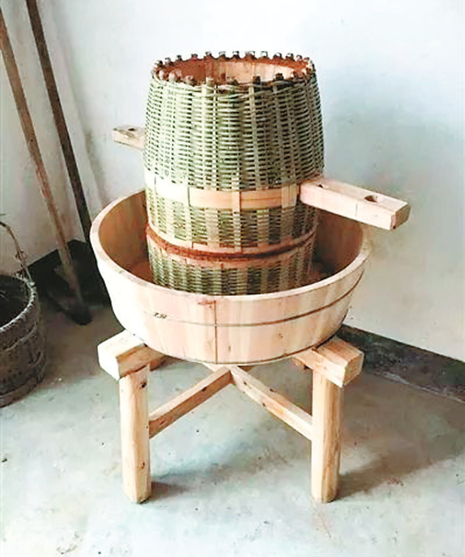 第二步是编织砻圈。做砻圈要用三年以上的毛竹,劈片、去骨、破条,织成高约二尺一寸、直径一尺八寸的圆圈。