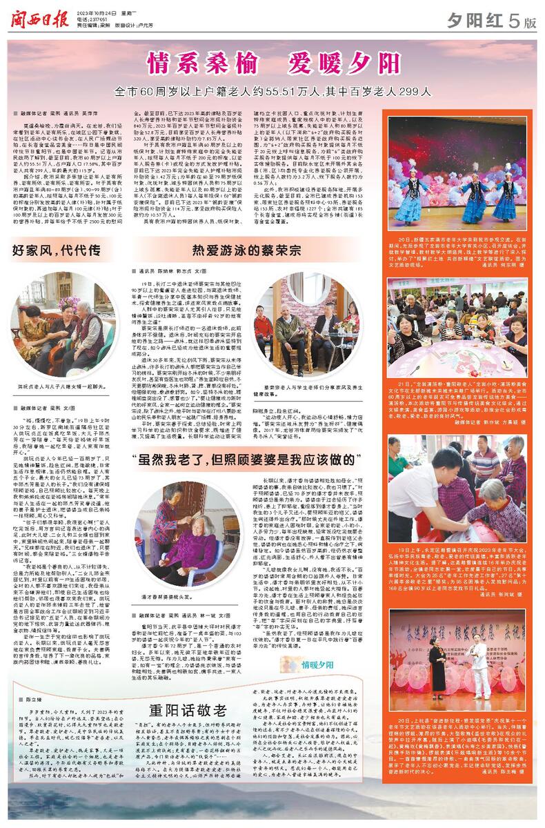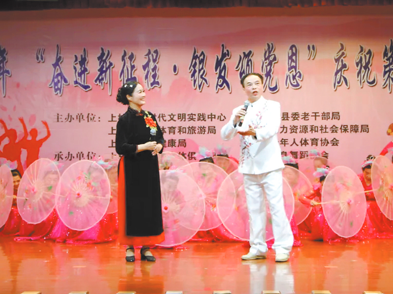 20日,上杭县“奋进新征程·银发颂党恩”庆祝第十一个老年节文艺活动在该县老年人活动中心举行。当天,伴随着铿锵的锣鼓、激昂的节奏,大型歌舞《盛世欢歌》在观众的礼赞声中拉开序幕,随后上演了小组唱《毛委员和我们在一起》、黄梅戏《黄梅飘香》、表演唱《长寿之乡美家园》、快板《警民携手防诈骗》、锣鼓表演《乐鼓唱响新生活》等10余个节目。一首首慷慨激昂的诗歌、一曲曲荡气回肠的革命歌曲,展示了老年人不忘初心跟党走、牢记使命听党话、发挥余热奋进新时代的决心。 通讯员 陈玉梅 摄