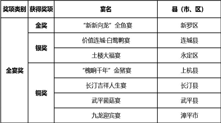 “全宴奖”获奖名单