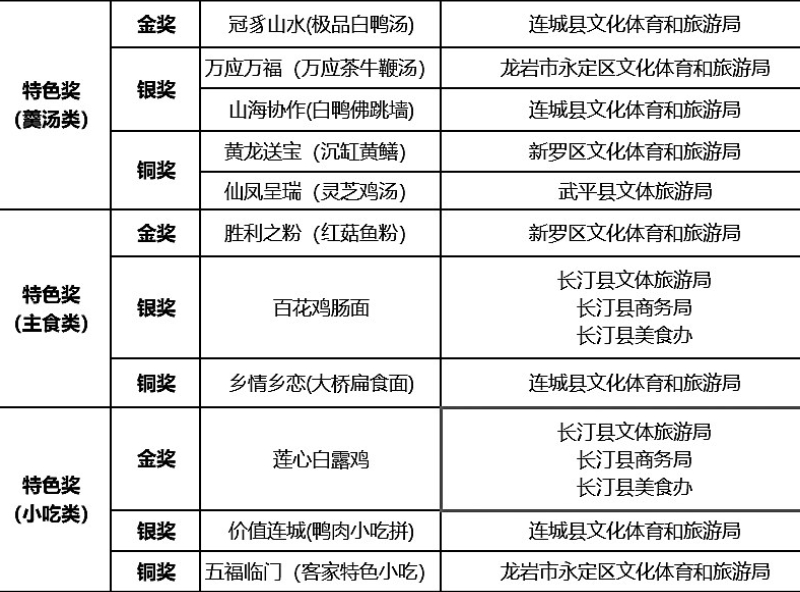 今年8月14日,我市举行了第二届文旅“客家美食宴大赛”。此次大会为龙岩市第二届文旅客家美食宴大赛获奖单位和个人进行了颁奖。