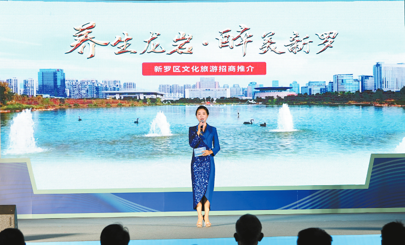 养生龙岩,醉美新罗。活动现场,文旅推介官分别推介了新罗区精心打造的“寻龙、朝圣、康养、问禅、赏夜”五大旅游精品路线和“‘千里江山,只此青绿’——江山全域旅游小镇”“天宫小镇田园文旅康养综合体”“雙車温泉小镇”等文旅招商项目;举行文旅合作和项目签约仪式,广州市黄埔区、厦门市集美区、龙岩市新罗区跨区域文旅对口合作共建、“玉宝森林王国”生态康养旅游、桃花坞生态度假区等文旅项目以及新罗文旅美食推广合作等共18个文旅合作项目现场完成签约。