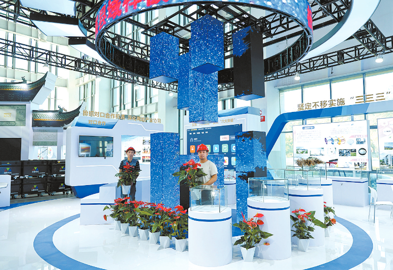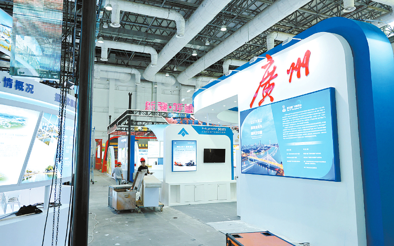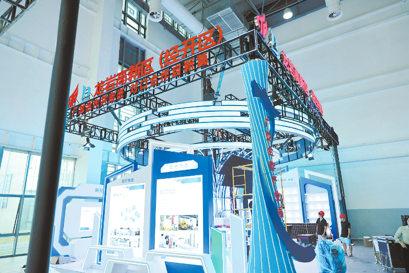 11月8日—10日,第十二届海峡两岸机械产业博览会暨第十四届中国龙岩投资项目洽谈会将在龙岩会展中心举行。图为昨日,记者在龙岩会展中心看到工作人员正在布置场馆。