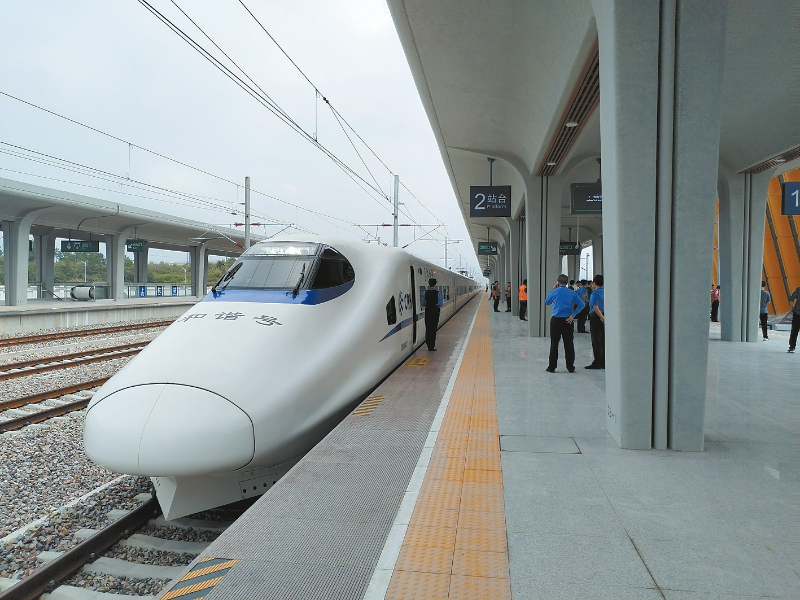 动车组检测列车首次驶入龙龙高铁上杭站。