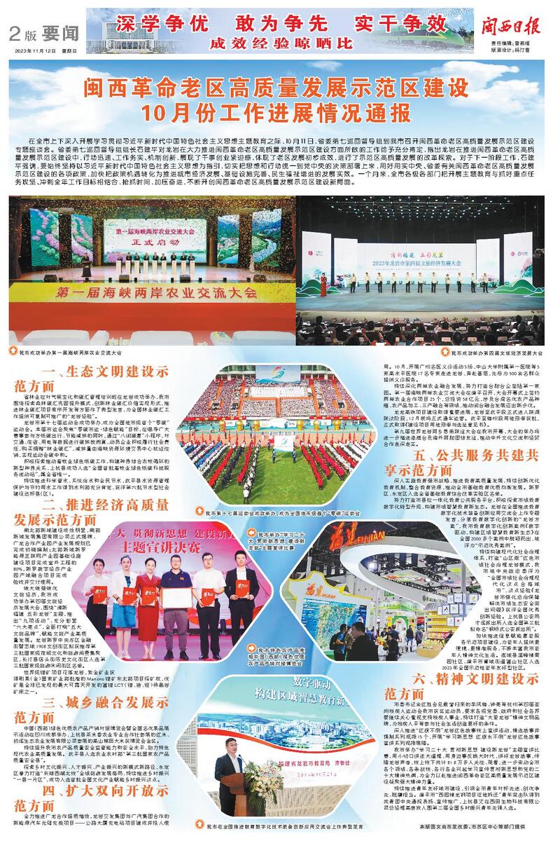 闽西革命老区高质量发展示范区建设 10月份工作进展情况通报