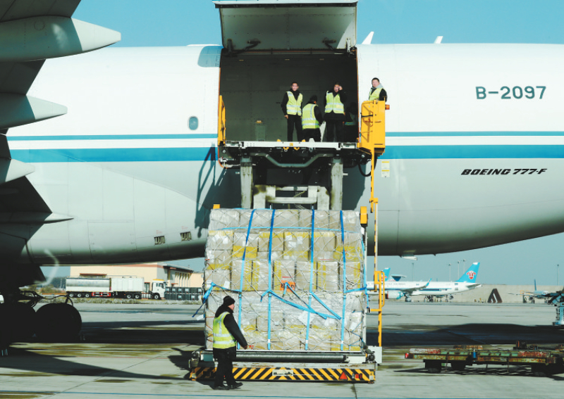 这是在沈阳桃仙国际机场拍摄的货物装机现场(11月13日摄)。当日,沈阳至芝加哥跨境电商全货机新航线开航仪式在沈阳桃仙国际机场举行。该航线是沈阳市年内开通的第二条直飞美洲的全货机航线,实现了辽沈地区对美中东部地区航空货运的新突破。 新华社记者 李钢 摄