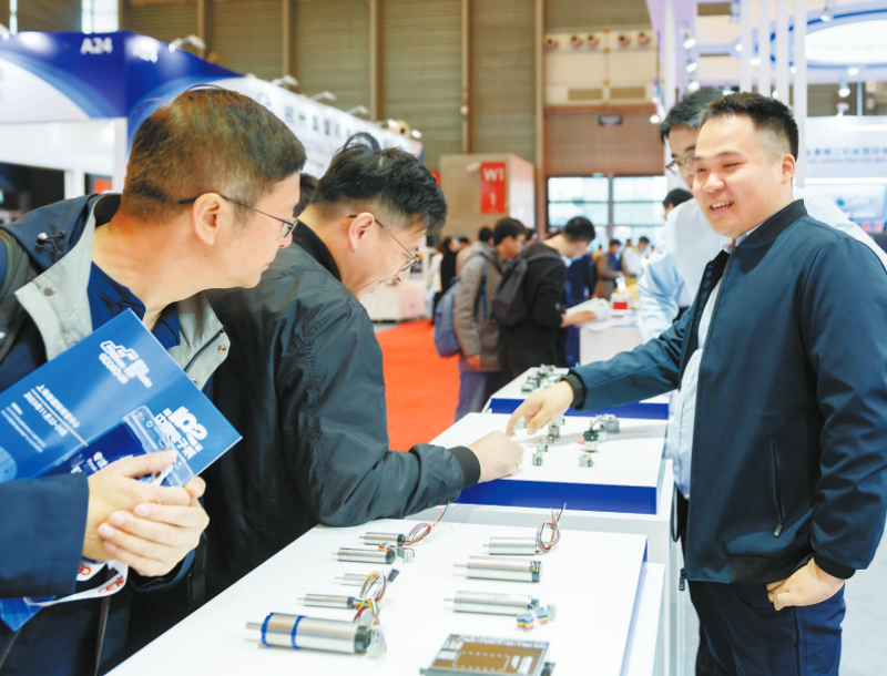 11月22日,参展商为观众介绍电机。当日,由中国电子科技集团公司第二十一研究所主办的第二十七届中国(国际)小电机技术研讨会暨展览会在上海新国际博览中心开幕。此次展会为期3天,吸引全球近400家中外企业携前沿产品参展。 新华社记者 王翔 摄