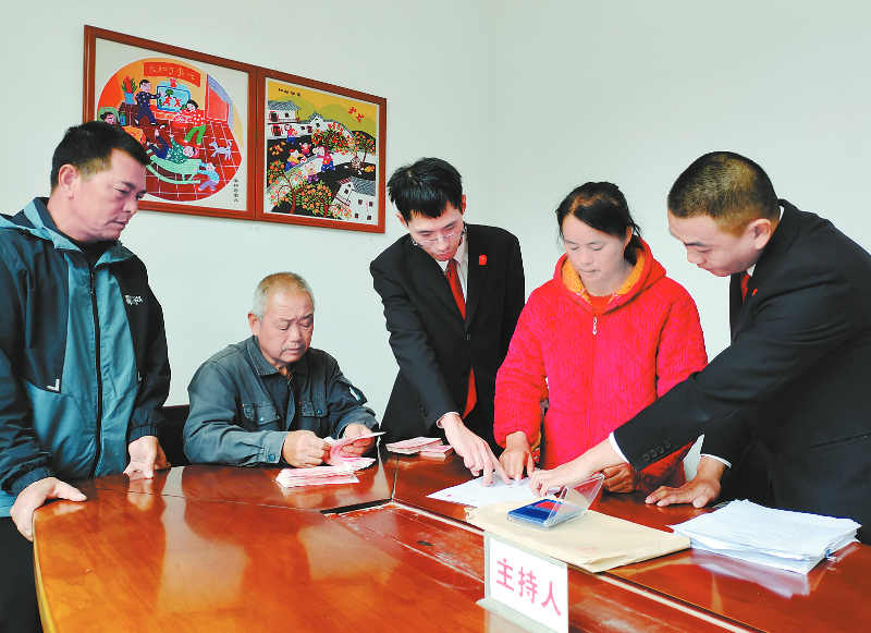 11月17日,漳平市人民法院新桥法庭采取“人大代表+法官”联动的方式,对一起交通事故纠纷案进行调解。该案系夏某醉酒后驾驶小型轿车沿道路行驶时,越过道路中心单虚线,与对向驶来的由赖某驾驶的无牌普通二轮电动车发生刮碰,造成赖某受伤及两车不同程度损坏的交通事故。经交警认定,夏某负事故全部责任,赖某无责任。调解过程中,法官和人大代表聚焦双方矛盾冲突点采取背对背“释法+说理”的方式,促成双方达成和解,夏某当庭向赖某支付了赔偿款3万元,纠纷一次性化解。图为赖某在法官和人大代表的见证下清点赔偿款。 通讯员 阿烽 李喜丽 摄