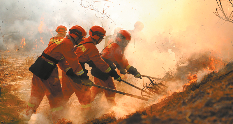 近日,龙岩森林消防支队在新罗区红坊镇进贝村附近山林组织大规模实兵、实案、实装跨区灭火行动综合演练,演练共调集4支队伍、30余台车辆,160余名指战员参加。图为模拟灭火现场。