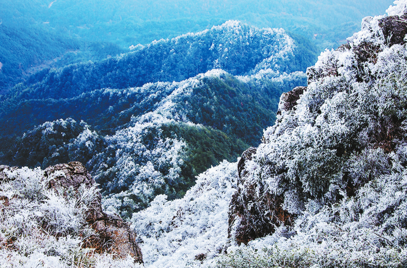 冬至前夕,寒流南下,龙岩市最低气温达-5°C,闽西大地浓霜凛冽,西北部千米高山冰雪覆盖,雾凇绽放,满山遍野白茫茫与天相接,银装素裹,蔚为大观。笔者在连城县北部的石壁山,发现这里的冰雪雾凇景观,与毛泽东主席当年的名词《卜算子·咏梅》中的意境极为相像。
