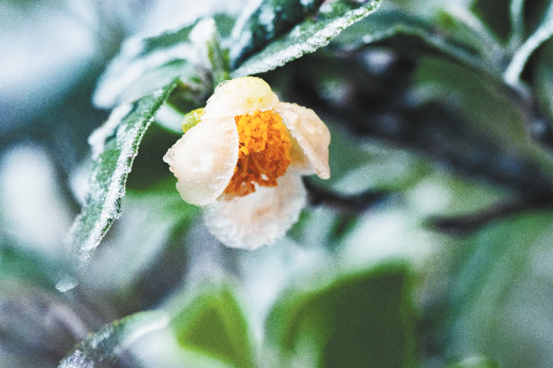 石壁山峰险峻路面崎岖,山路的路面冰冻湿滑。摄影师们开着越野车,登上最高峰,只见冰天雪地和雾凇景观,如诗如画,悬崖冰柱延绵,山野朵朵凇花迎风绽放,临寒摇曳,奇异壮观的景色令人赞叹不已,美不胜收。傍晚时分,夕阳西下,白茫茫的山林大地瞬间变成了梦中的童话世界。更令人称奇的是,冰雪雾凇就像无数洁白的花朵开在枝头,而走近时你会发现,就连路边的小草野花,也被银白包裹得晶莹透亮,像是绽放的玻璃花。“已是悬崖百丈冰,犹有花枝俏。”冰天雪地,寒梅即将凌寒怒放,意味着春天即将到来。