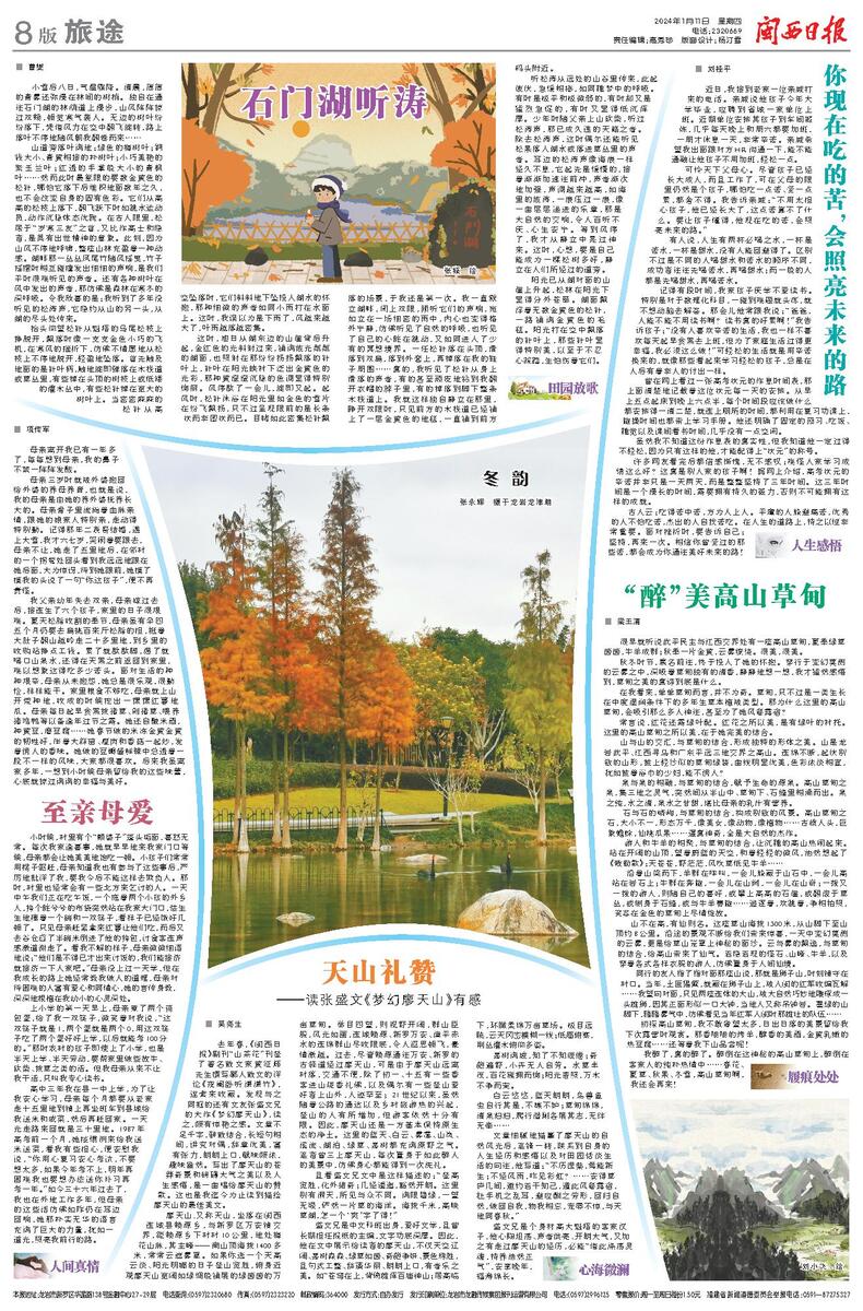 可怜天下父母心。尽管孩子已经长大成人,而且工作了,可在父母的眼里仍然是个孩子,哪怕吃一点苦、受一点累,都舍不得。我告诉亲戚:“不用太担心孩子,他已经长大了,这点苦算不了什么。要让孩子懂得,他现在吃的苦,会照亮未来的路。”