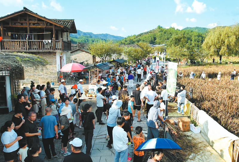街边摊点,天然晾晒的富硒地瓜干、柿子饼叫卖声不断;土特产店,中草药药膳、客家姜糖、米粉等购买络绎不绝;莲讯等返乡创业青年主播在直播间带货当地农特产品;香叙美宿、吴家大院等特色民宿迎来新客人......