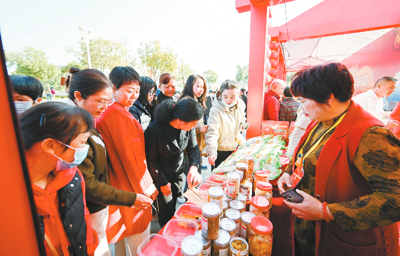 市民在品尝、购买非遗年货