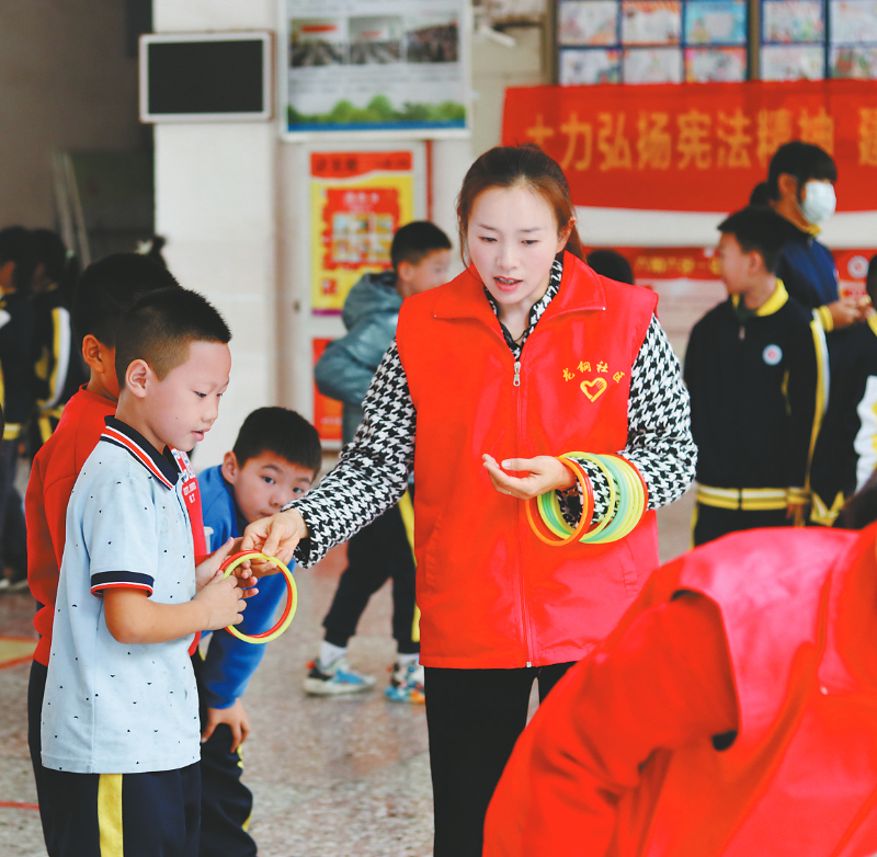 近日,新罗区曹溪街道龙钢社区联合曹溪司法所走进龙钢学校,为同学们送上“法治套餐”。活动设有圈圈有法、普法传声筒等游戏,同学们在游戏互动中提高法律素养和法治意识。 通讯员 邓晖 摄