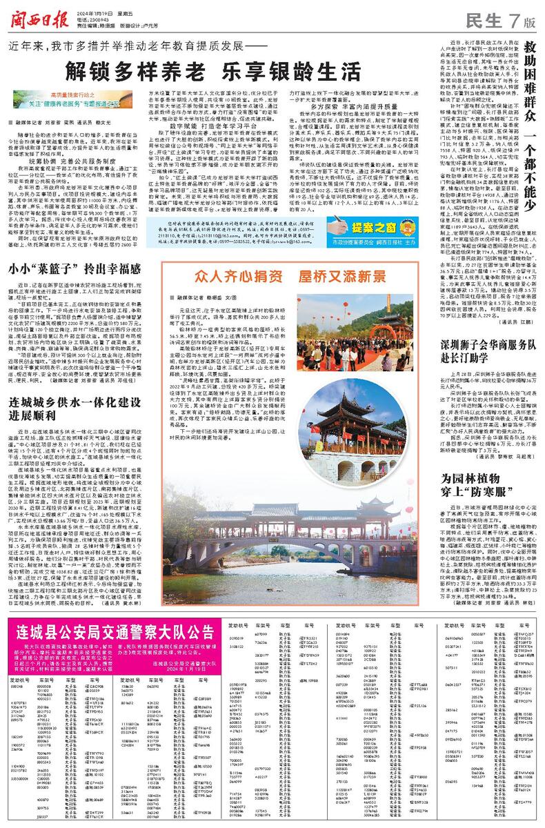 连城县水利局总工程师江彬表示,今后将加强监管,加快推进二期工程扫尾和三期北部片区及中心城区管网改造工程建设,力争在今年完成城乡供水一体化建设任务,早日实现城乡供水同质、同服务的目标。 (通讯员 黄水林)