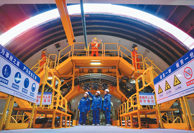 1月18日,工人在隧道内作业。当日,由中铁十四局承建的津潍高铁津沽海河隧道超大直径盾构机“津城一号”顺利始发,标志着京津冀地区开挖直径最大、掘进距离最长的高铁盾构隧道正式开始掘进。津潍高铁起自天津枢纽滨海站,终至济青高铁潍坊北站,正线长度348.9公里,设计时速350公里。 新华社记者 邢广利 摄