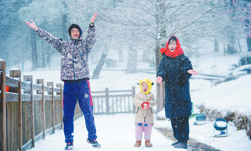 22日傍晚,古田梅花山景区迎来2024年第一场降雪。23日上午,景区迎来降雪后第一批游客,游客们在雪中堆雪人、打雪仗、记录美景。 融媒体记者 章宸睿 摄