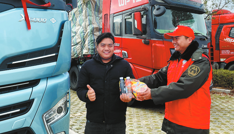23日,因寒潮天气导致路面结冰,不少司机滞留在高速口,龙岩高速各服务区管理人员为滞留司机提供暖心姜茶、24小时开水、应急物资等服务保障。 融媒体记者 郭亦斌 通讯员 郭娜 摄