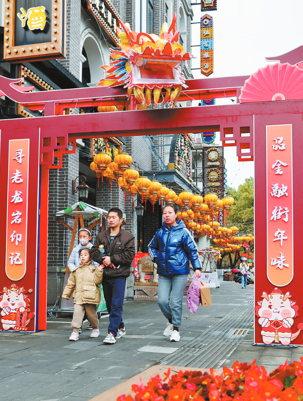 连日来,装扮一新的中央苏区金融街吸引市民前往购物、游玩。 融媒体记者 谢泽铧 摄