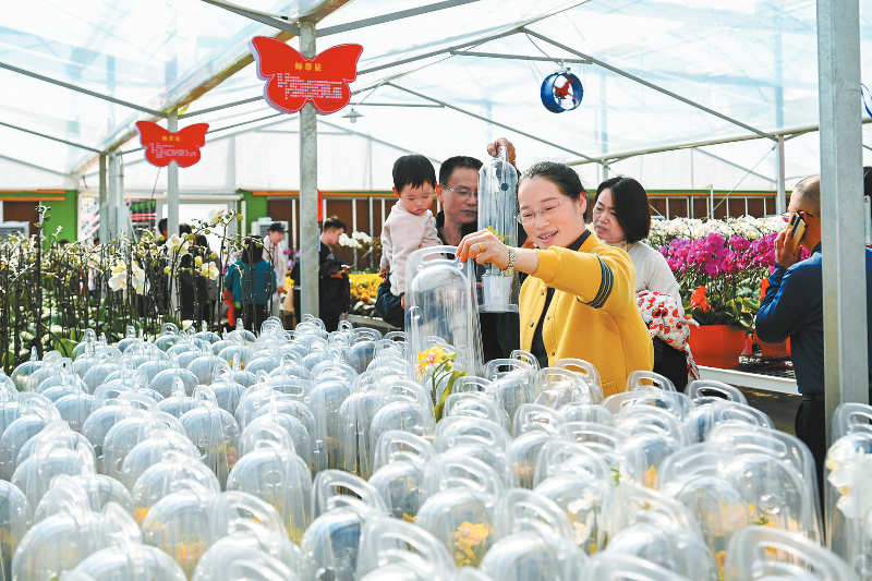 此次文化旅游节展出100多个品种的蝴蝶兰,色彩斑斓,丰富多样,满足广大市民游客观赏和选购的需求。“这次旅游节给我带来许多惊喜。除了常规的展览和表演,还有许多创意互动环节,增加了趣味性,这样的活动无疑是一个促进地区经济发展的良好平台,它不仅展示了当地的文化特色和魅力,也为当地的发展带来新机遇和动力,让我留下了深刻印象和美好回忆。”正悉心挑选心仪蝴蝶兰的张先生说道。
