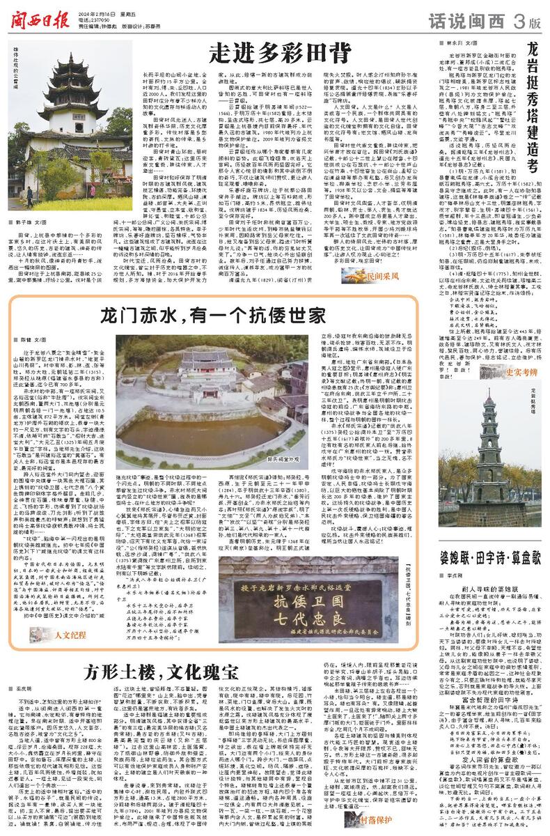 位于龙岩八景之“紫金晴雪”·紫金山麓的新罗区龙门镇赤水村,“地宽平山川秀丽”。村中有郑、彭、林、连、张等姓。郑为大姓,元朝延祐二年(1315),郑癸轻从桃源(福建省永春县的古称)迁此肇基,迄今已有700多年。