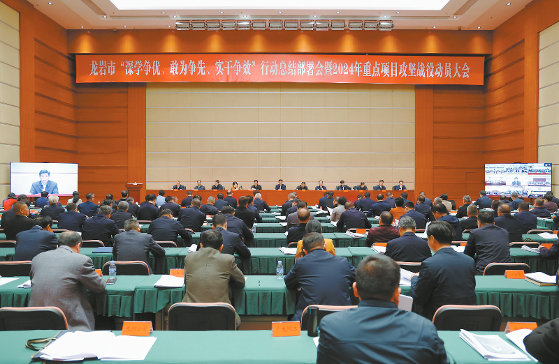会上,市委常委、常务副市长陈厦生总结通报了2023年重点项目攻坚战役情况,并对《龙岩市2024年深化拓展“三争”行动开展重点项目攻坚战役工作方案》进行解读和部署。会议还听取了各县(市、区)、龙岩高新区(经开区)2023年重大项目完成情况和近期重大项目开工情况汇报,以及全市“三争”行动开展情况通报;新罗区、上杭县,市发改委、商务局、文旅局和龙岩新机场建设项目指挥部作典型经验发言,其余县(市、区)和龙岩高新区(经开区)作书面发言。会议采取视频直播形式,各县(市、区)及龙岩高新区(经开区)设分会场。