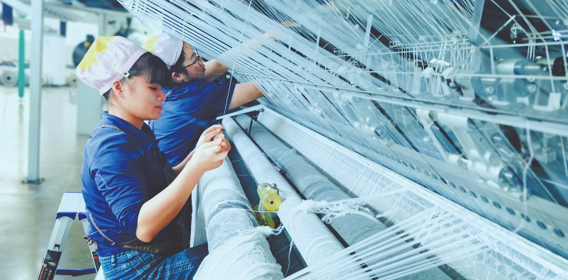 新兴纺织厂生产线 融媒体记者 章宸睿 谢泽铧 摄
