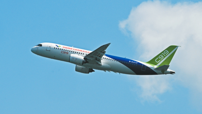 2月18日,中国国产大型客机C919在新加坡航展开幕前进行预演飞行。新华社发 邓智炜 摄