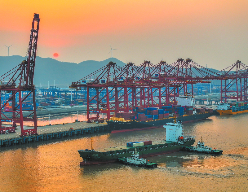 2024年 2月11日,浙江宁波舟山港金塘港区码头作业繁忙(无人机照片)。走过不平凡的2023年,中国经济在砥砺奋进中迎来2024年新开局。开年以来,各地各部门抢抓机遇奋发作为,亿万人民同心协力,推动中国经济在高质量发展道路上坚定向前。经济回升向好势头明显,彰显我国经济韧性强、潜力大、后劲足,为加快形成新质生产力贡献力量。