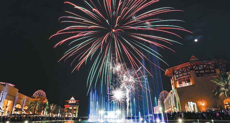 2月25日,人们在科威特艾哈迈迪省的庆祝活动中观看烟花。