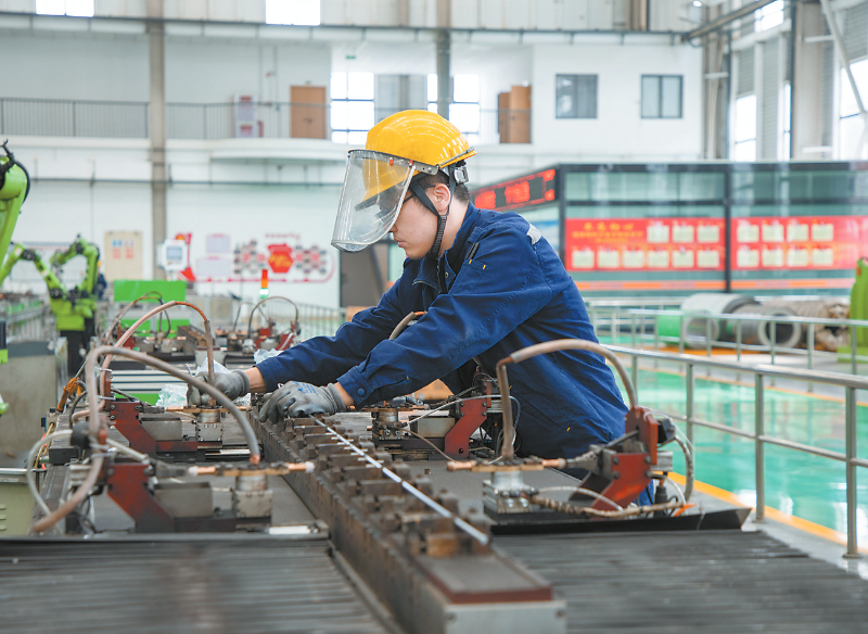 近日,位于北部新城龙净智慧环保产业园的电除尘高精智造厂内,两条机器人智能焊接生产线正满负荷运行。春节过后,该企业出现了产销两旺的势头,订单爆满,年前,刚增加的一条焊接针刺线智能制造生产线,正在进行设备调试中,正月十五之前投入使用。 融媒体记者 郭亦斌 通讯员 谢雯 摄