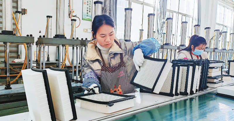 近日,笔者走进立邦(福建)滤清器制造有限公司生产车间,只见多台生产线同步运行,机器声轰鸣,工人们正在拉伸、裁剪滤纸,并配合自动束带机将滤纸进行固定、组装,现场一派繁忙景象。目前,该公司产能饱满,产销两旺,新扩建的厂房投入使用后,使得产能逐渐得到释放。通讯员 陈惠 摄