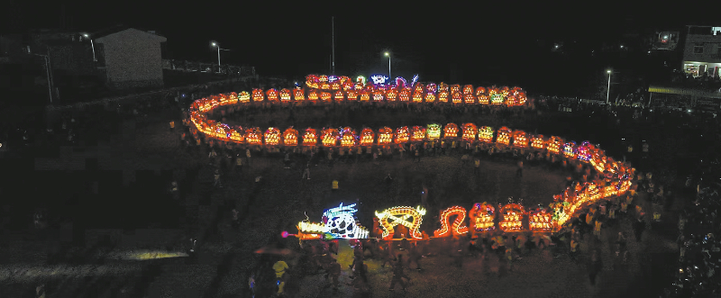 元代,卢氏迁入后,将供品龙从“嘉应祖殿”抬到山脚下的开基祖祠“范阳堂”,并点睛游龙,祈愿人丁兴旺、风调雨顺、五谷丰登。后来,这一民俗活动演化为以木板为龙身支架、花灯为装饰、长达数百米的“板凳花灯龙”。历久不衰,三至五年一次,直至1937年抗战爆发。在停顿50年后,1987年又得到恢复发展。2022年被列为福建省级“非遗”,有着“图腾领域酷跑世界”的壮举之誉,中央电视台等媒体多次报道这一盛况。