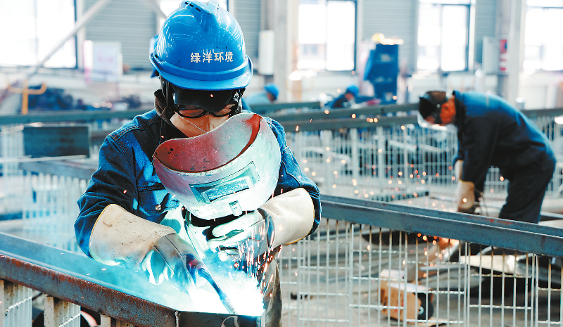 近日,绿洋高端环保智能装备制造项目工人在生产机械环保构件 ,目 前项目已进入试生产阶段。